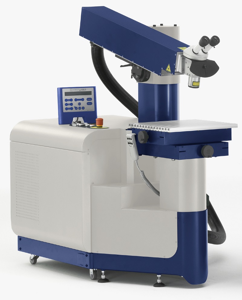 Z-Säulen ausgestattet, bietet ,,SL” die notwendige Ergonomie für den Dauereinsatz. Der manuelle Arbeitstisch kann jederzeit durch einen motorischen Antrieb mit Joystick erweitert werden. Sowohl der manuelle als auch der motorische Tisch ermöglichen hohe Präzision während des Schweißprozesses. Durch den schwenkbaren Laser wird die Zugänglichkeit maximiert. Die Laserleistung ist durch das innovative Leistungsstufen - Konzept von 60 Watt bis 500 Watt modular aufrüstbar.